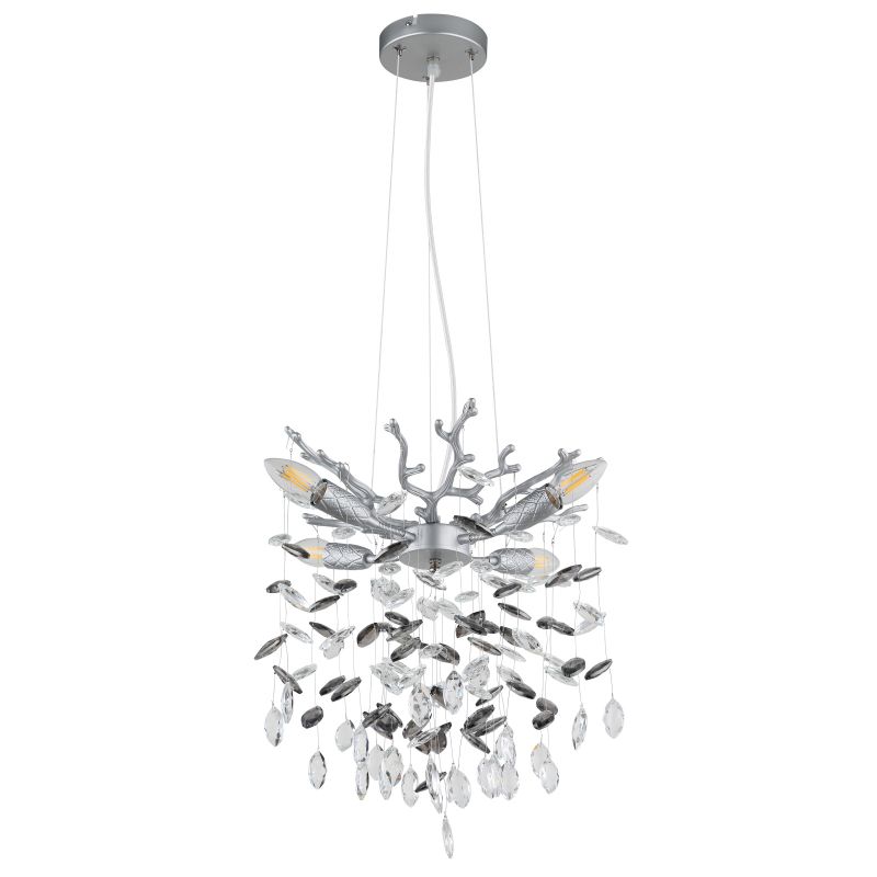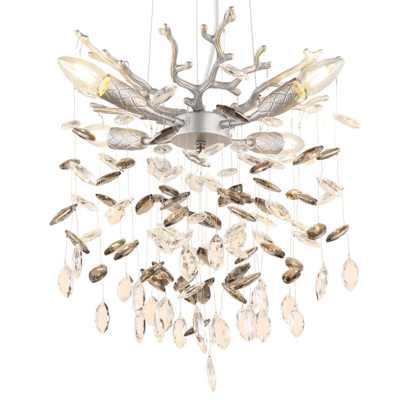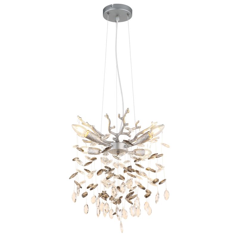 | Materiale | metal argintiu mat, cristale de sticla fumurie, transparent |