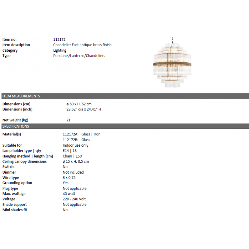 | Putere | 13x40Watt E14 excl. 220-240V,50-60Hz |