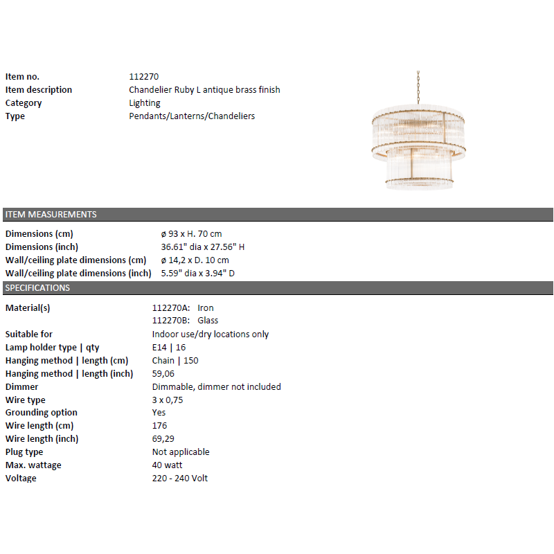 | Dimensiuni | diametru:93cm, inaltime:70cm+150cm lant |
