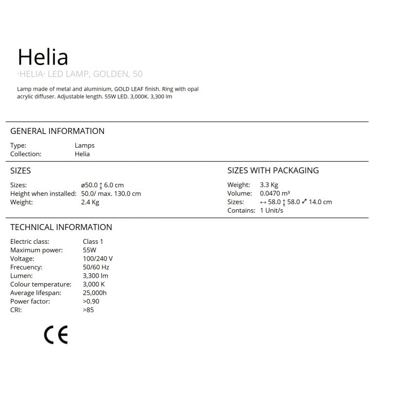 | Descriere | cadru din metal cu aluminiu, finisaj foita aurie, difuzor acrilic opal |