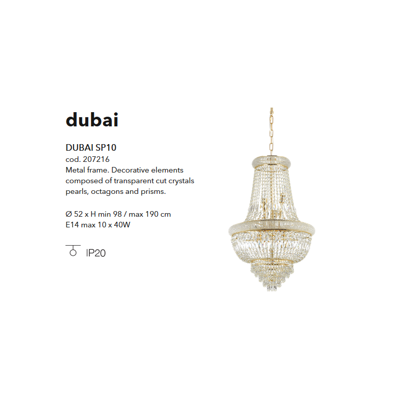 Candelabru elegant design clasic DUBAI cu elemente decorative din cristal in diferite forme, corp de iluminat ce asigura lumina de accent, fiind o solutie decorativa pentru iluminatul interior din living, dormitor, dining...