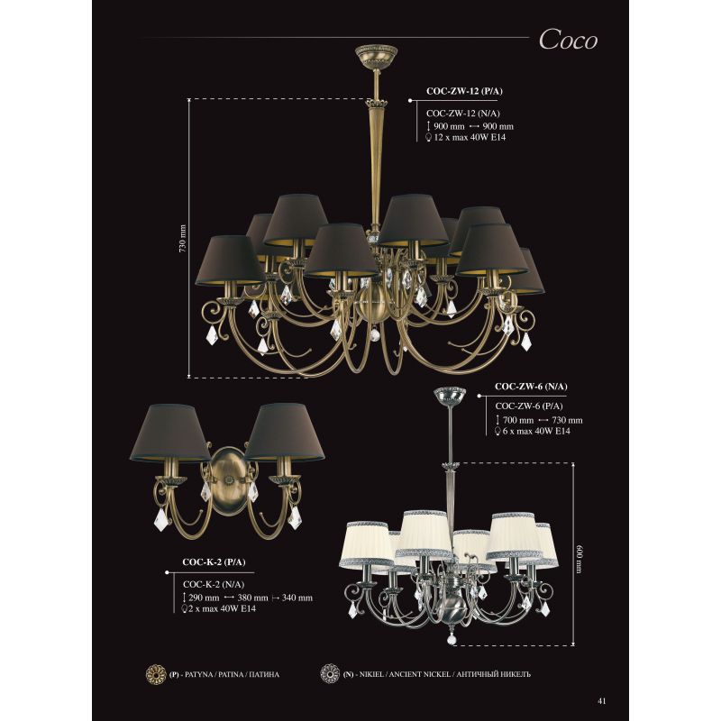 | Descriere | metal alama disponibil in 5 finisaje: alama patinata (P), alama polisata (Z), alama auriu mat (ZM), alama nickel antic (N) sau nickel lucios (BN), cristal, abajur textil disponibil in diferite culori |