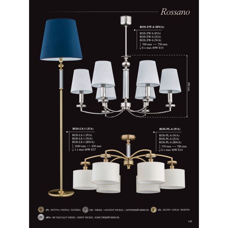 Lustrele cu abajururi Rossano oferă o iluminare elegantă și superioară de calitate. Lumina moale poate sublinia subtil sau modifica radical caracterul general și aspectul unei anumite camere. Abajururile diverse din seria Rossano sunt o modalitate excelentă de a-ți decora casa, apartamentul și de a crea o atmosferă uimitoare, minunată la care ai visat întotdeauna.