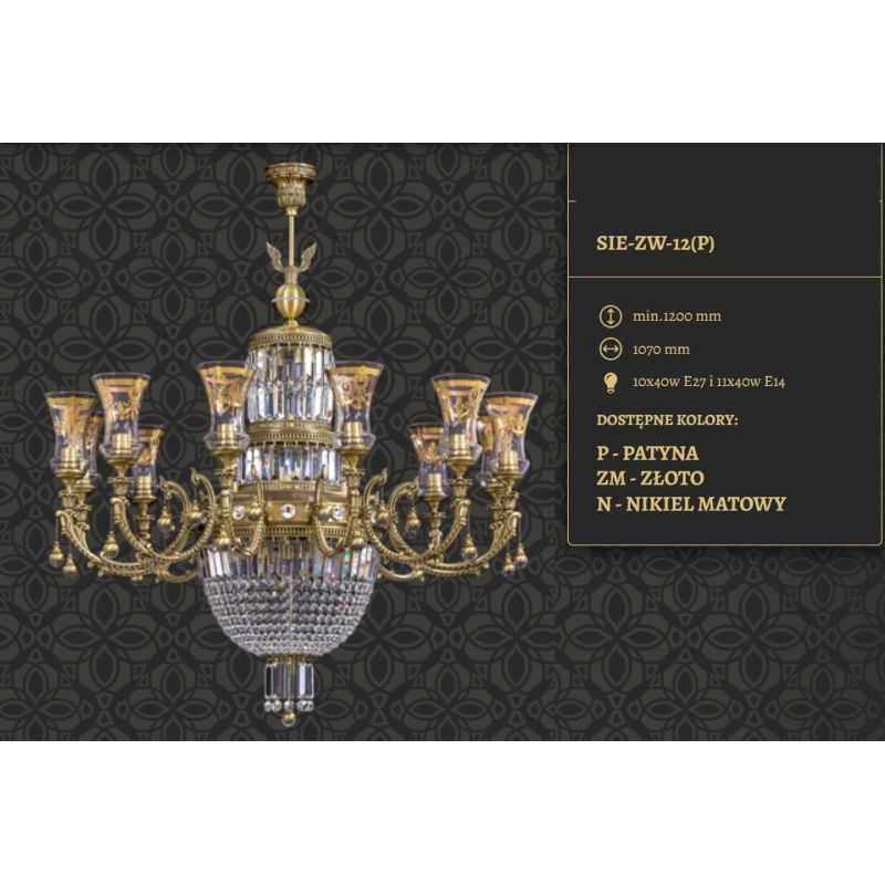 Descriere | metal alama disponibil in 3 finisaje: alama patinata (P), alama finisaj nickel antic (N) sau alama satinata (ZM), cristale, abajur din sticla |