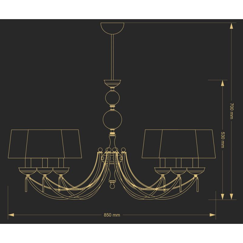 | Informatii produs: | Lustra realizata manual personalizabila (vezi poze secundare). Va rugam specificati finisajul metalului si codul abajurului in observatiile comenzii sau separat in mailul de confirmare pe care il veti primi de la unul din consultantii nostri. |