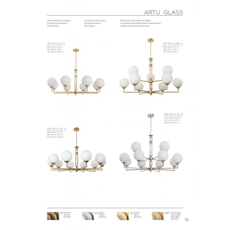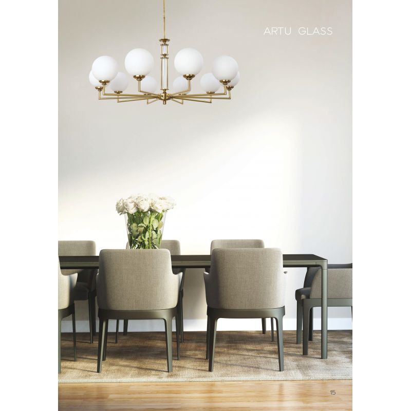 Colecția Artu modernă din aramă a cărei baze sofisticate sunt decorate cu abajururi și elemente decorative din sticlă. Și, deși scopul practic al oricărei lustre este iluminarea principală sau suplimentară a camerei, designul său holistic poate spori frumusețea și atractivitatea interiorului în care este instalată. Un frumos candelabru, aplica, lampă de podea și lampă de masă din alamă vor ocupa un loc demn în interiorul unei clădiri rezidențiale, hotel, restaurant sau birou, dar pentru a crea o iluminare eficientă, mai multe lămpi din aceeași colecție Artu ar trebui combinate.
