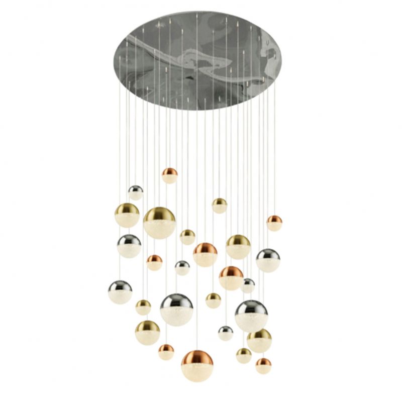 | Descriere | baza rotunda din metal cromat, globuri finisaj crom, cupru sau alama satinata, acrilic cu aspect cristale slefuite |