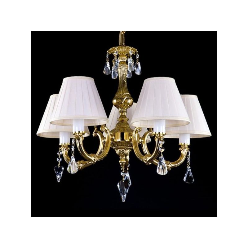 Candelabru elegant cu 5 surse de lumină decorat cu garnituri de cristal Crystal Exclusive. Componentele din cristal și piesele metalice fine în finisaj auriu, argintiu sau alte suprafețe fac o combinație extraordinară. Aplica din cristal, combinat în special cu alte lustre de cristal sau corpuri de iluminat, este potrivit pentru orice interior, modern sau tradițional.