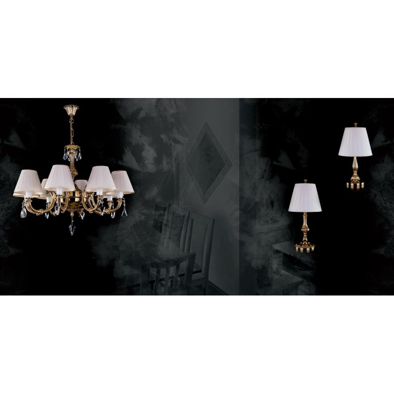 Cristalul utilizat are un conținut de până la 30% PbO, specific cristalului Bohemia, permițând realizarea unor forme variate de pandantive, inclusiv variante transparente sau colorate, în funcție de colecție. Structura metalică a corpurilor de iluminat este disponibilă, în funcție de model, în finisaje precum alamă auriu sau galvanizat argintiu.