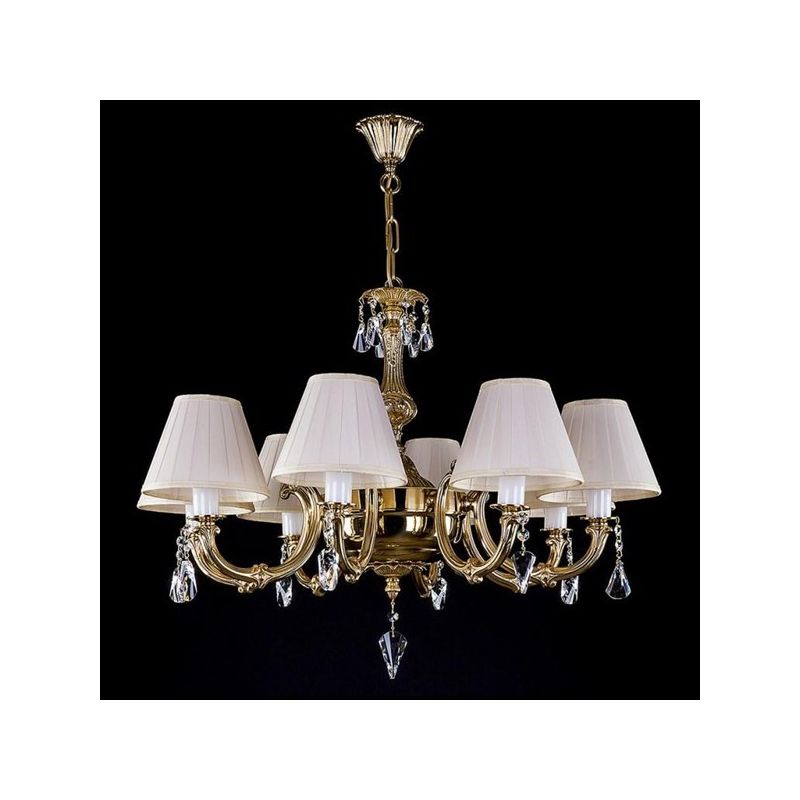 Candelabru elegant cu 8 surse de lumină decorat cu garnituri de cristal Crystal Exclusive. Componentele din cristal și piesele metalice fine în finisaj auriu, argintiu sau alte suprafețe fac o combinație extraordinară. Aplica din cristal, combinat în special cu alte lustre de cristal sau corpuri de iluminat, este potrivit pentru orice interior, modern sau tradițional.