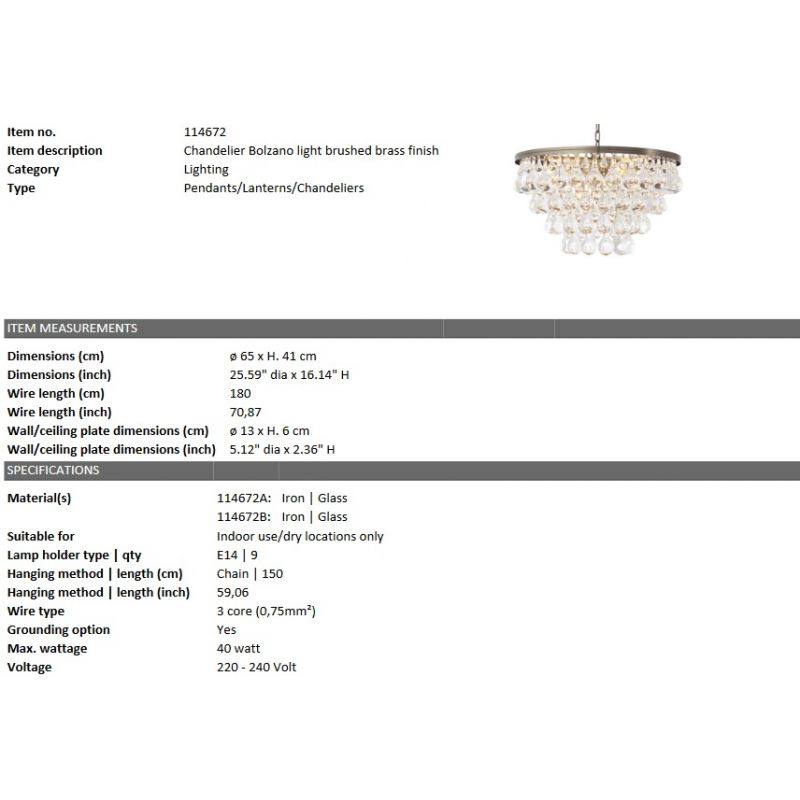 Candelabru elegant design clasic BOLZANO din metal si pandantive din sticla, corp de iluminat ce asigura lumina de accent, fiind o solutie decorativa pentru iluminatul interior din living, dormitor, dining...