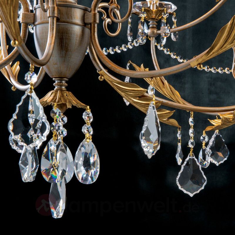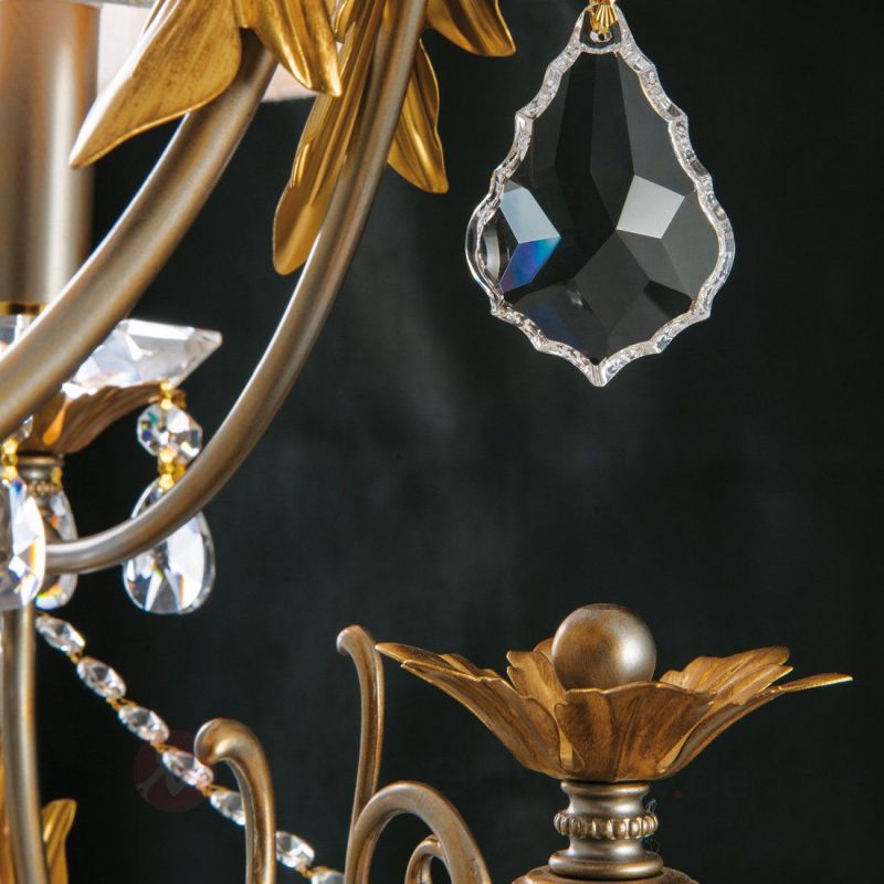 | Materiale | metal finisaj argintiu pictat manual cu nuante aurii, decorat cu frunze metalice, crystal plumb nobil, abajure din tesatura organza alb sau champaqne |