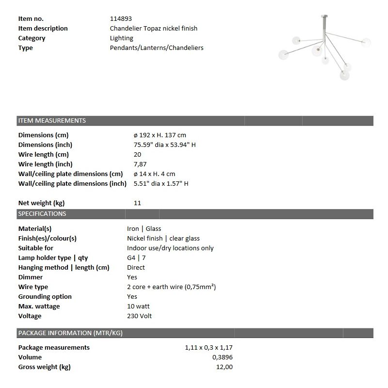 | Putere | 7x10 Watt G4, bec exclus din pret |