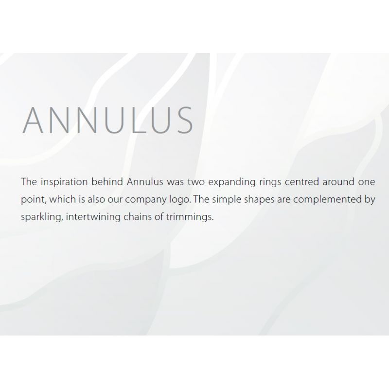 Inspirația din spatele gamei Annulus a fost inele în expansiune centrate în jurul unui punct. Formele simple sunt completate de lanțuri cu strălucitoare pandantive.