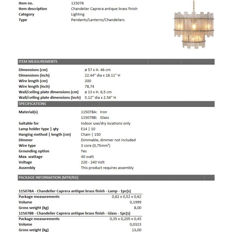 Candelabru design LUX Caprera este realizat din sticla suflata manual si detalii din alama cu aspect antichizat, candelabrul Caprera se monteaza pe tavan si adauga o atingere vintage decorului tau.
