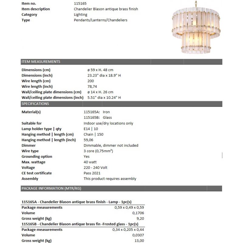 Candelabru design LUX Blason este realizat din sticla si detalii din alama antica, candelabrul Blason se monteaza pe tavan si adauga o atingere vintage decorului tau.