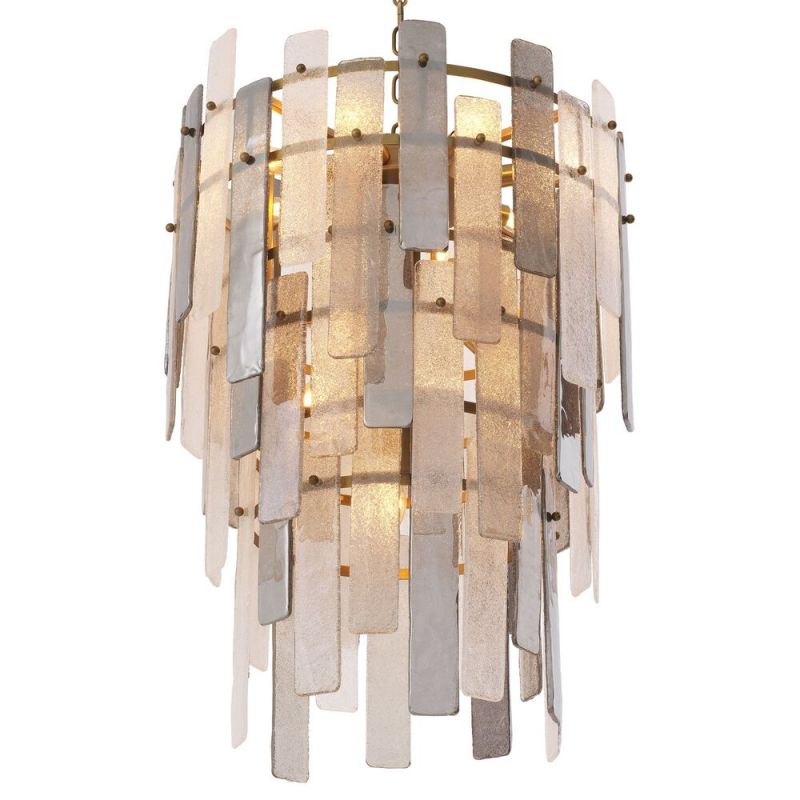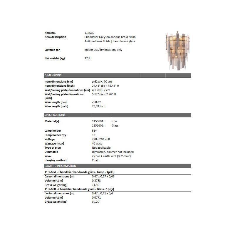 Încoronați holul, camera de zi sau spațiul de luat masa cu candelabrul Greyson. Acesta fiind realizat din sticla suflata manual si fier finisaj alama antica, este potrivit pentru decorul casei dumneavoastra.