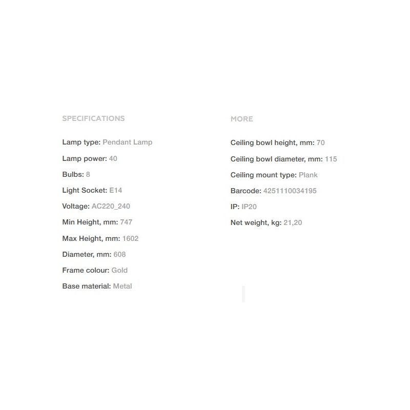 | Putere | 8x40 Watt E14, bec exclus din pret |