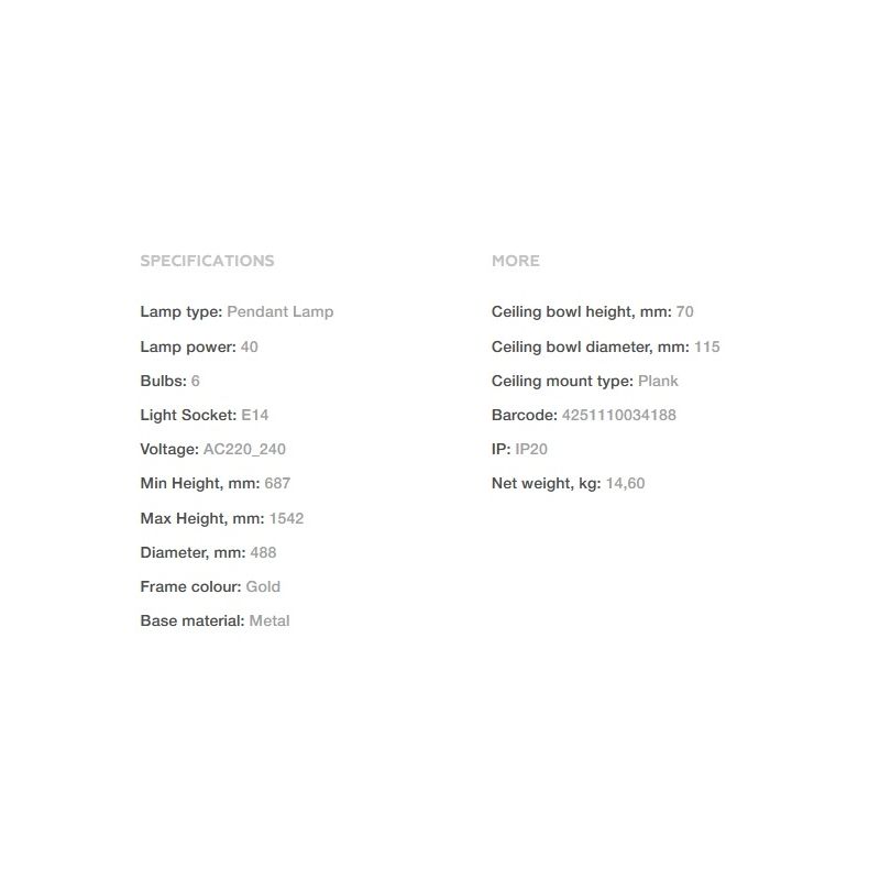 | Putere | 6x40 Watt E14, bec exclus din pret |