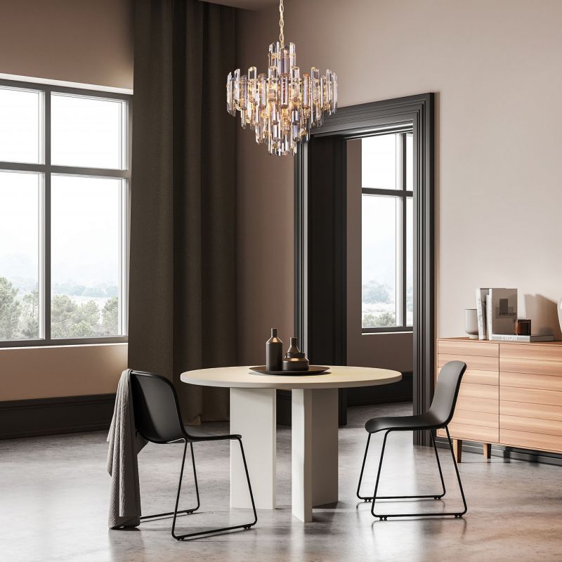 | Descriere | metal auriu, cristal din sticla transparenta cu tăietura arhitecturală mare |