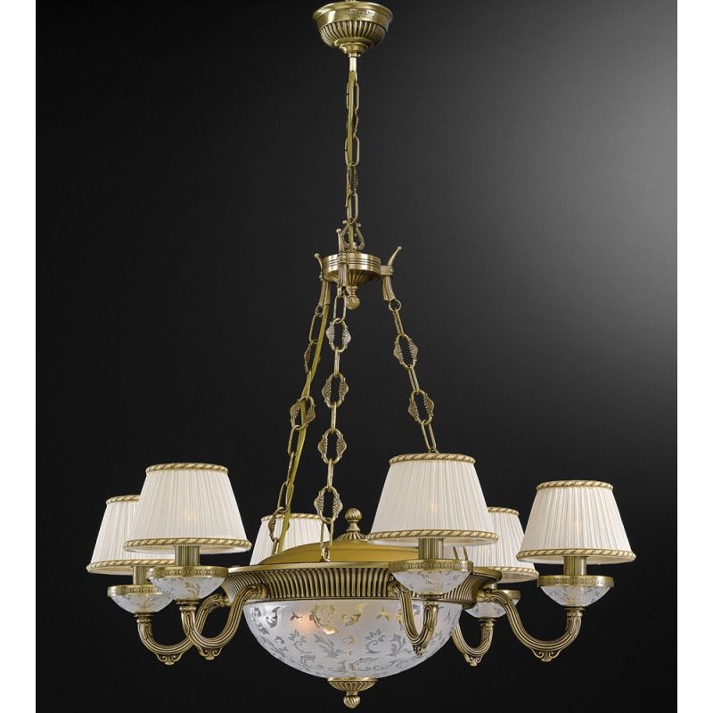 | Descriere | cadru din alama turnata finisaj bronz art, sticla satinata decorata, abajur textil fin plisat |