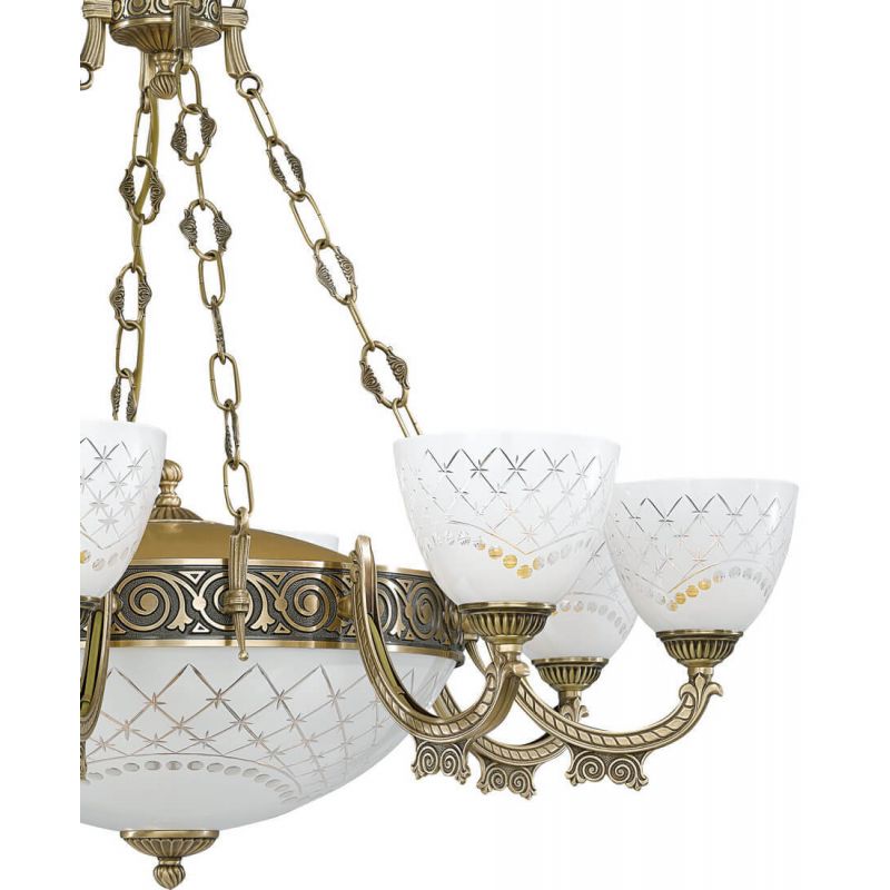 | Informatii produs: | Lustra realizata manual din alamă masivă si sticla suflata , încadrându-se armonios atât într-un decor clasic sau modern. |