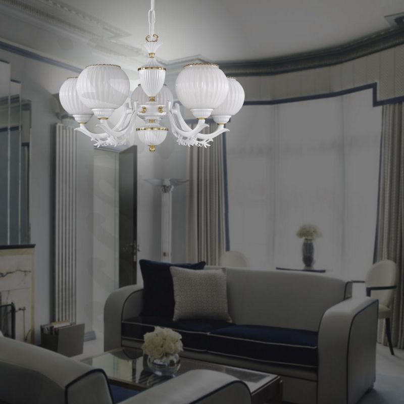 | Informatii produs: | Lustra realizată manual din alamă și sticla suflata, operă de artă a maeștrilor italieni, încadrându-se armonios atât într-un apartament decorat in stil clasic |