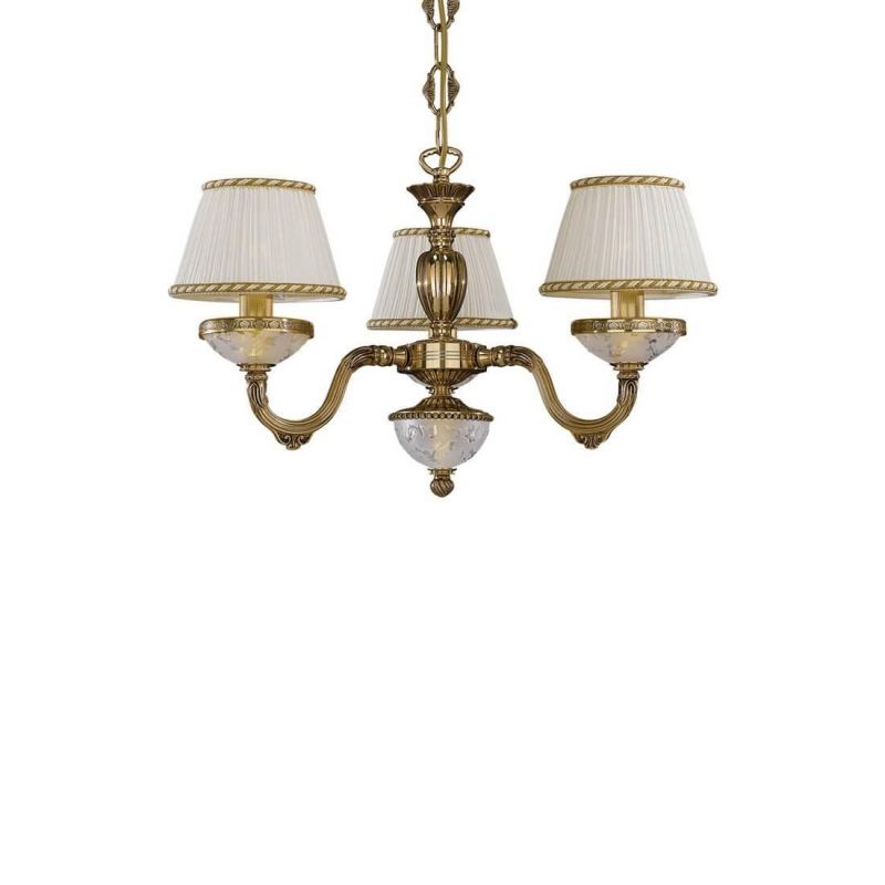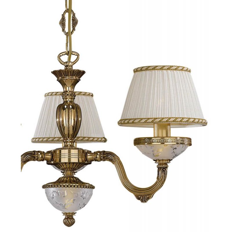 | Descriere | alama turnata finisaj auriu- oro frances, sticla mata decorata cu ornamente, abajur textil fin plisat |