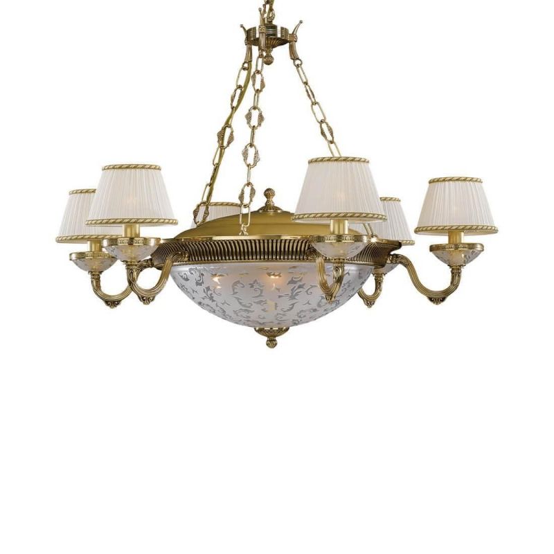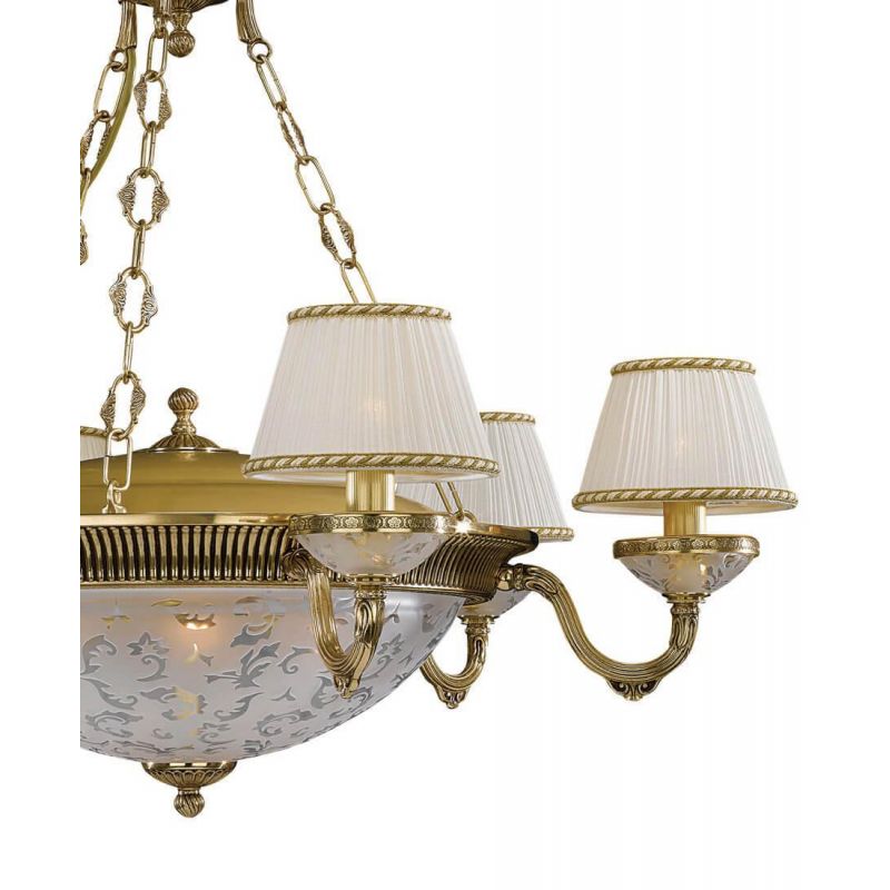 | Descriere | alama turnata finisaj auriu- oro frances, sticla mata decorata cu ornamente, abajur textil fin plisat |