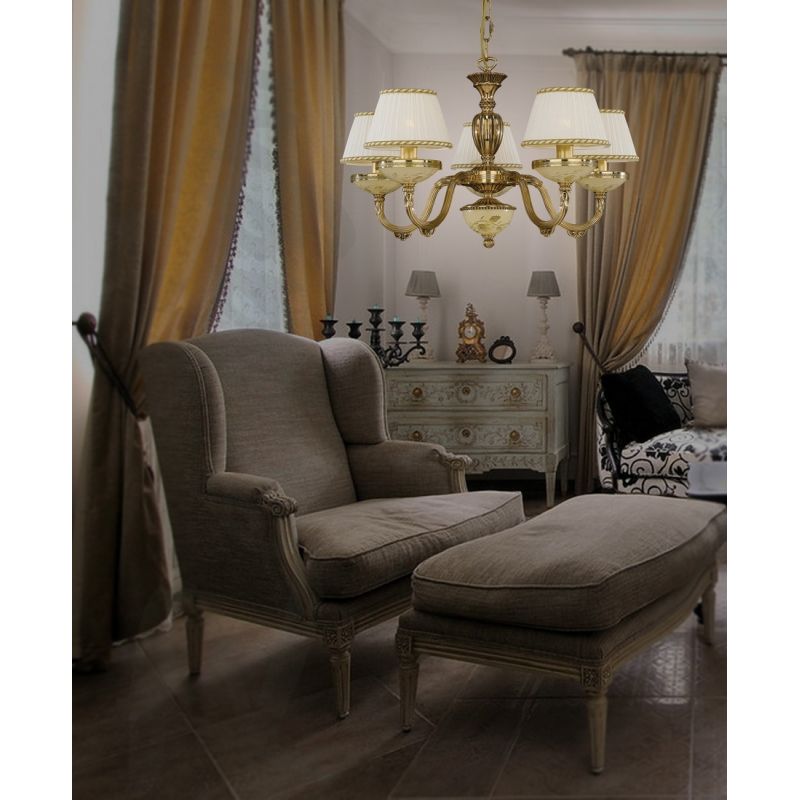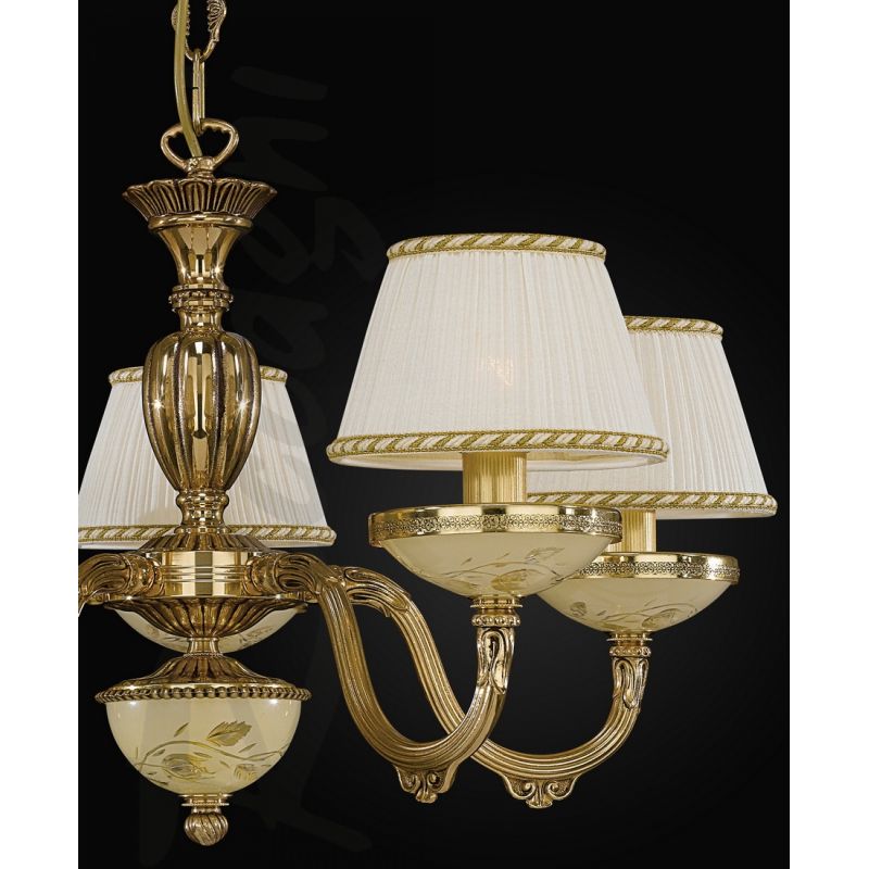 | Descriere | alama turnata finisaj auriu- oro frances, sticla mata decorata cu ornamente cu trandafir, abajur textil fin plisat |