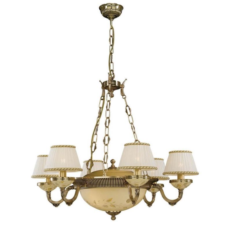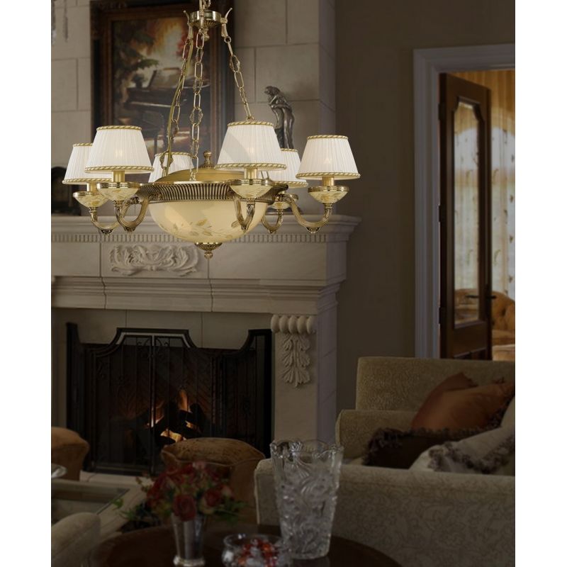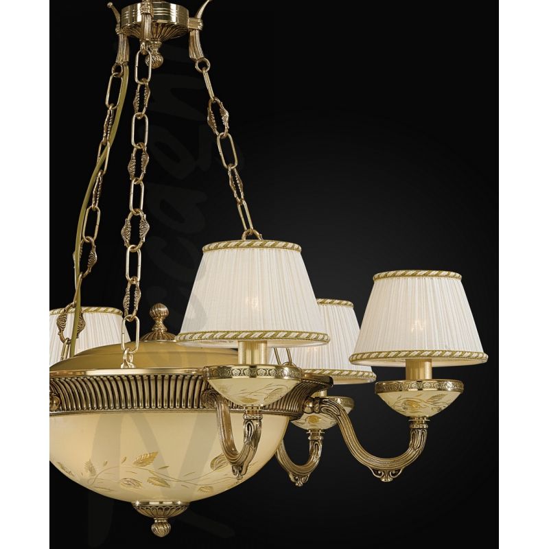 | Descriere | alama turnata finisaj auriu- oro frances, sticla mata decorata cu ornamente cu trandafir, abajur textil fin plisat |