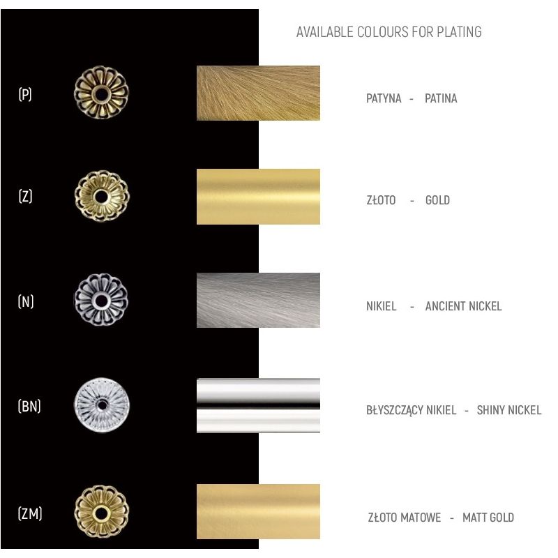 | Descriere | sticla, metal alama disponibil in 5 finisaje: alama patinata (P), alama finisaj nickel antic (N), nickel lucios (BN), alama polisata (Z) sau alama auriu mat (ZM) |