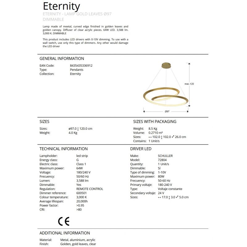 | Descriere | lampa din metal auriu, placat cu foita aurie, difuzor de piese acrilice transparente |