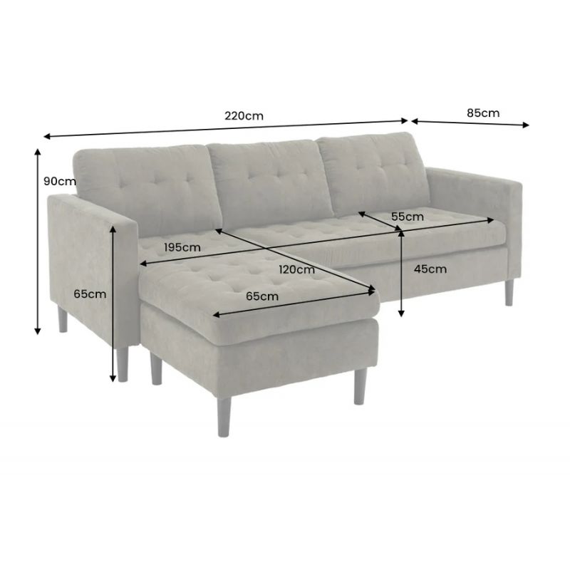 | Dimensiuni | inaltime:90cm, lungime:220cm; adancime:85cm/ 150cm; inaltime sezut:45cm |