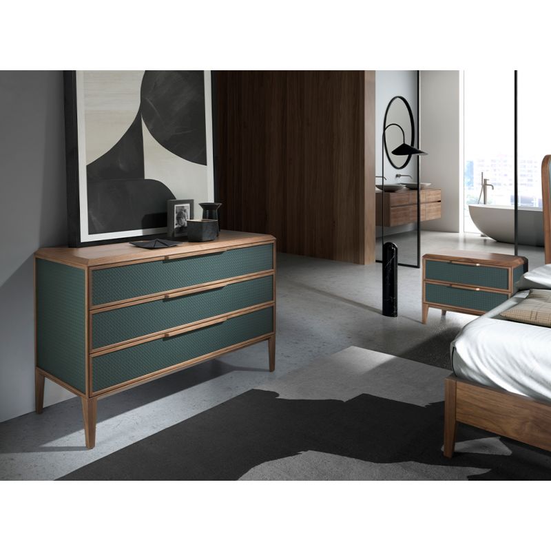 | Materiale | lemn furniruit de nuc natural, PVC verde inchis cu gravare geometrica |