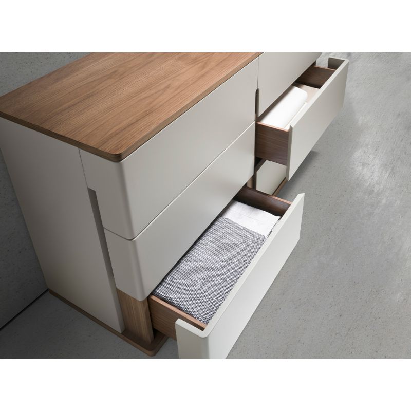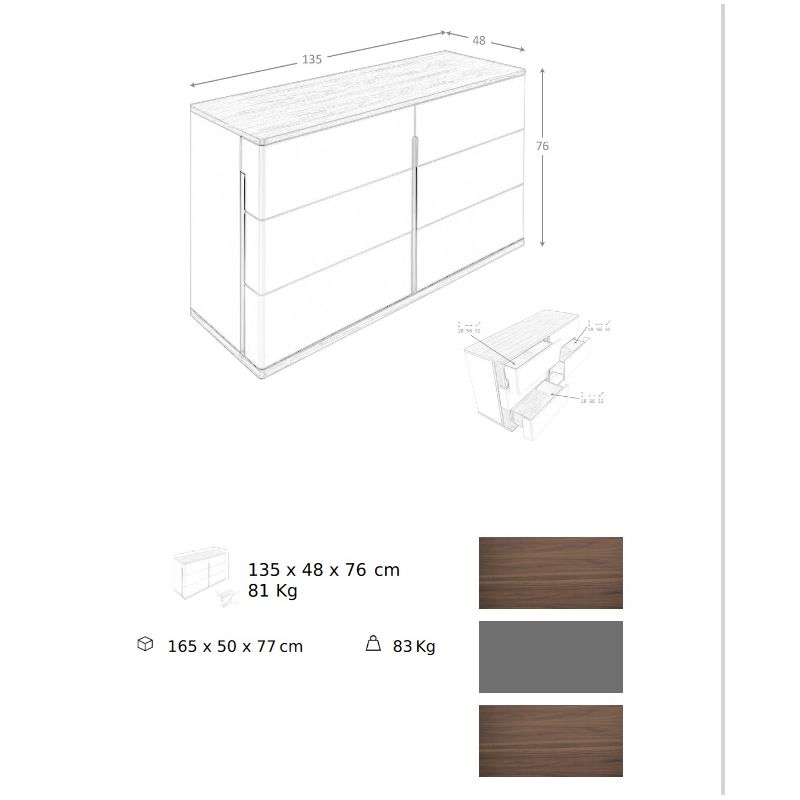 | Materiale | furnir din lemn de nuc de 0,5mm grosime, MDF lăcuit în gri mat, sertare cu functia -Soft Closed System- |