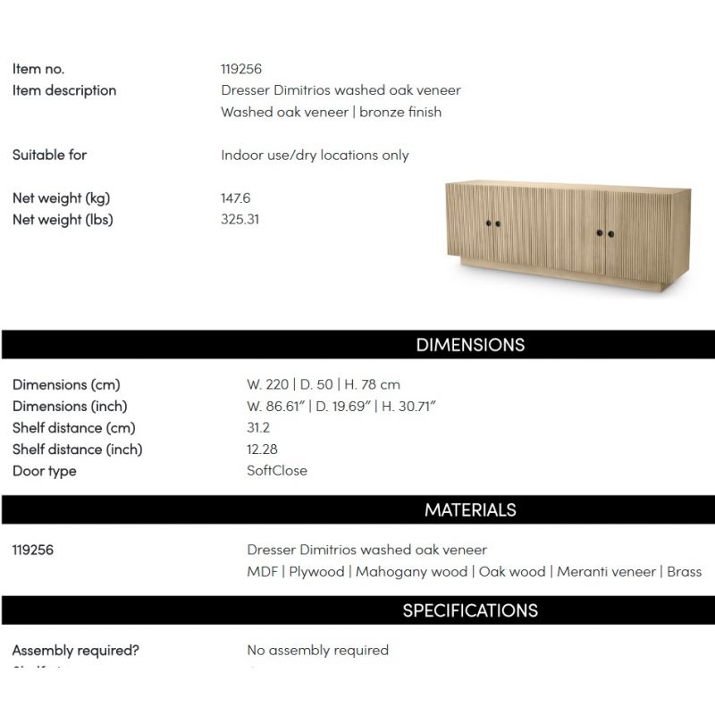Comoda design LUX, Furnir de stejar albit, Dimitrios