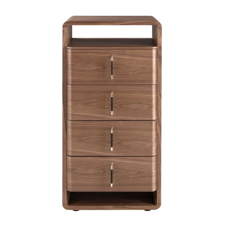 | Materiale | furnir lemn de culoarea nucului, picioare PVC negru, manere din otel auriu |