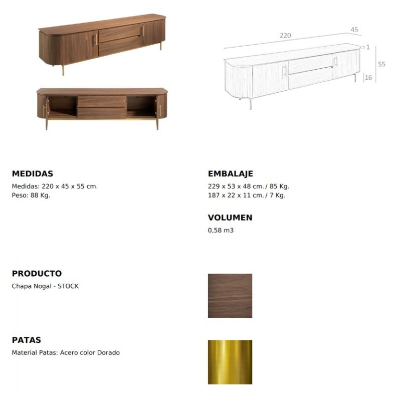 | Materiale | furnir din lemn de nuc de 0,5mm grosime, otel inoxidabil auriu, sertare cu sistem de inchidere -soft- |
