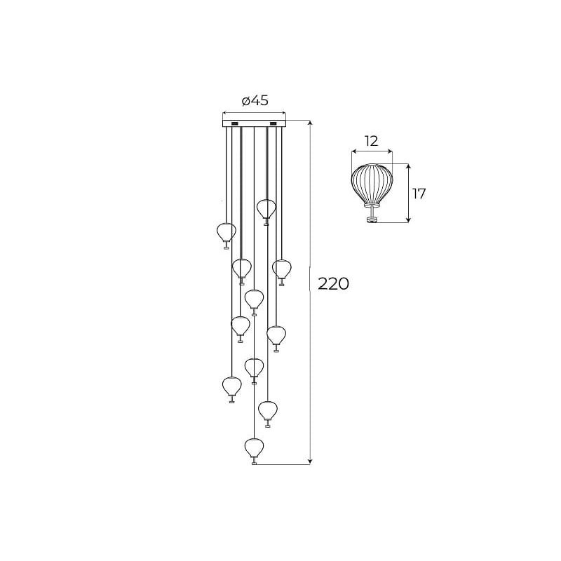 | Dimensiuni | diametru:45cm; diametru sticla:12cm; inaltime sticla:17cm; inaltime maxima:220cm |