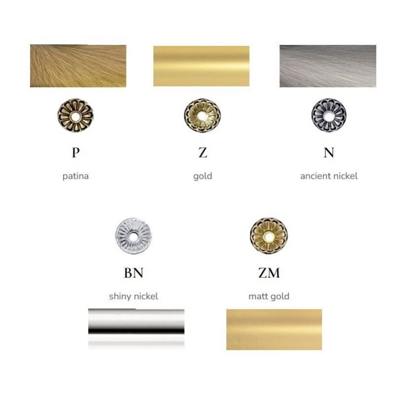 | Materiale | sticla, metal alama disponibil in 5 finisaje: alama patinata (P), alama finisaj nickel antic (N), nickel lucios (BN), alama polisata (Z) sau alama auriu mat (ZM) |