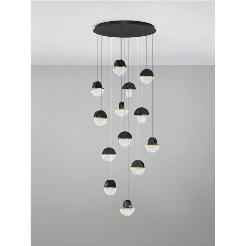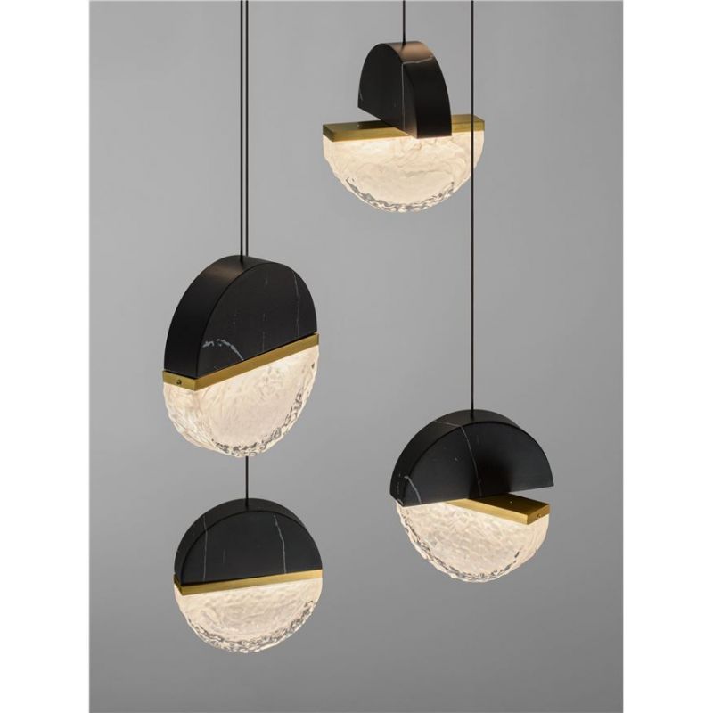 | Materiale | baza metal negru mat, marmură neagra, metal alama aurie, sticla transparenta si alba |