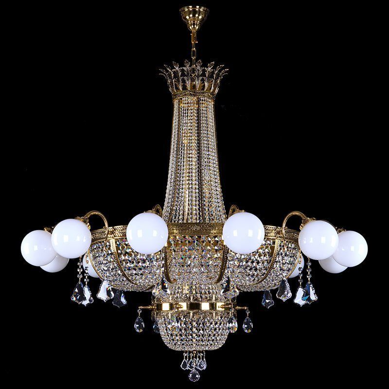 Lustra eleganta XXL decorată cu garnituri de cristal Crystal Exclusive. Componentele din cristal și piesele metalice fine în finisaj auriu, argintiu sau alte suprafețe fac o combinație extraordinară. Lustra din cristal, combinată în special cu alte lustre de cristal sau corpuri de iluminat, este potrivit pentru orice interior, modern sau tradițional.