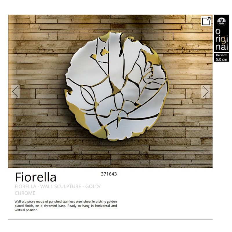 | Descriere | decoratiune de perete realizata din din otel inoxidabil si tabla perforata cu finisaj auriu lucios, pe baza cromata |
