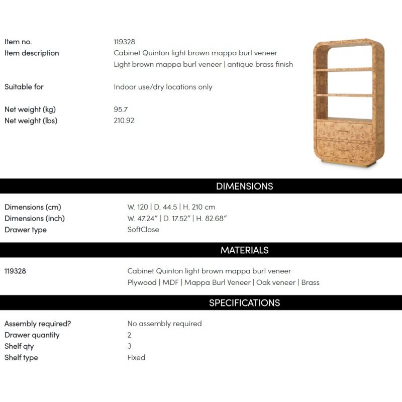 Dulap cu Rafturi design LUX, Furnir Burl Mappa, Maro, Quinton
