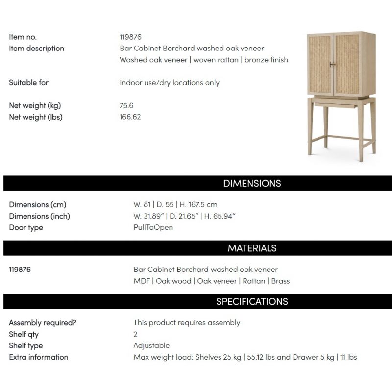 Dulap de Bar Design LUX, Lemn, Rattan, Borchard stejar albit