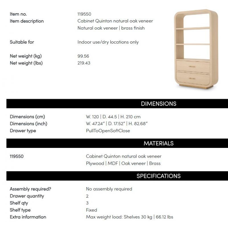 Dulap cu Rafturi design LUX, Furnir stejar, Natur, Quinton