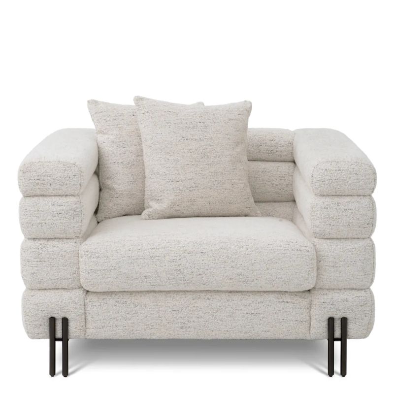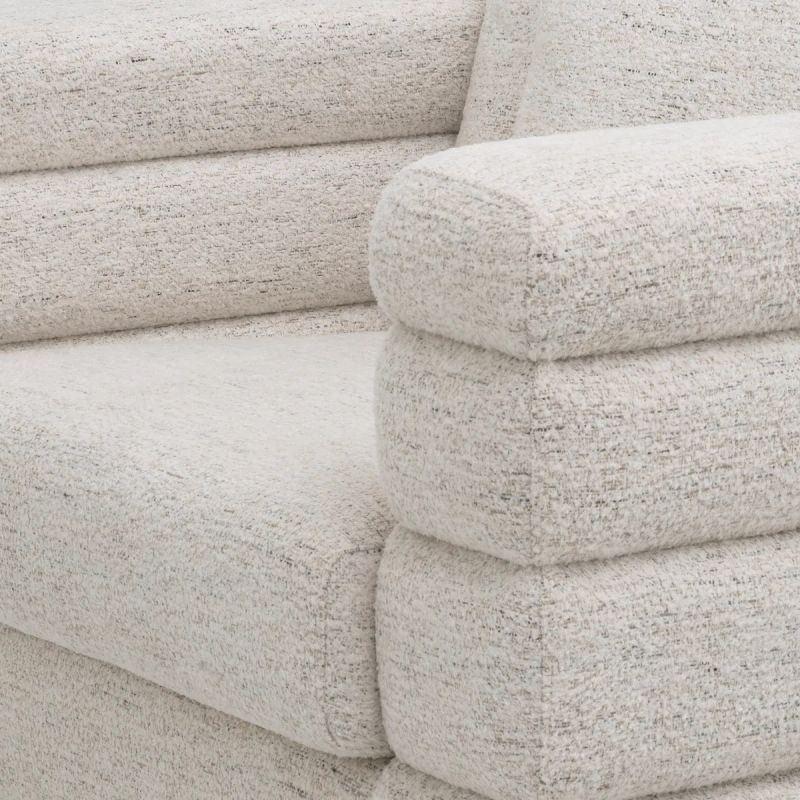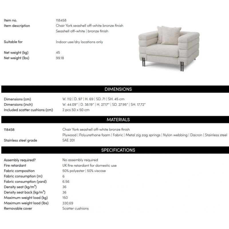 | Materiale | tapitat cu tesatura rafinata Seashell, placaj, spuma poliuretanica, arcuri metalice, otel inoxidabil finisaj bronz |