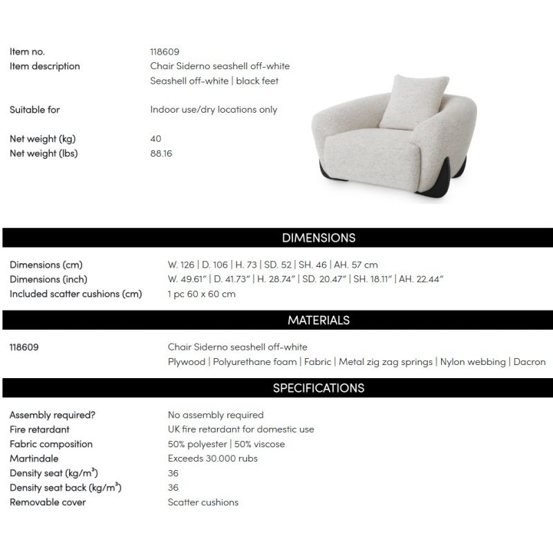 | Materiale | tapiterie din tesatura Seashell off-white, picioare negre din lemn |