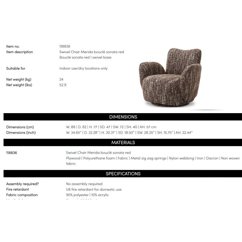 Fotoliu pivotant design LUX Merida, Boucle sonata red